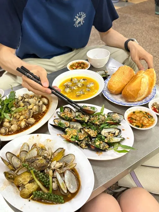 晚上去朋友推荐的一家海鲜馆吃饭,点了他推荐的血蛤,奶油海螺,各种贝壳。上菜很快,10分钟就上齐了,吃第一口贝壳就被惊艳了,里面香料和酱汁的味道融合的非常完美,把贝壳的鲜激发出来了。奶油海螺搭配法式面包,咸甜结合的口感,让本来有点腻的奶油汤变的淡甜。还有血蛤,第一次吃用调料炒过的,以前家里吃的都是开水烫熟的,不得不说味道确实是好,而且价格真的很划算,点了5,6盘才人民币80多。