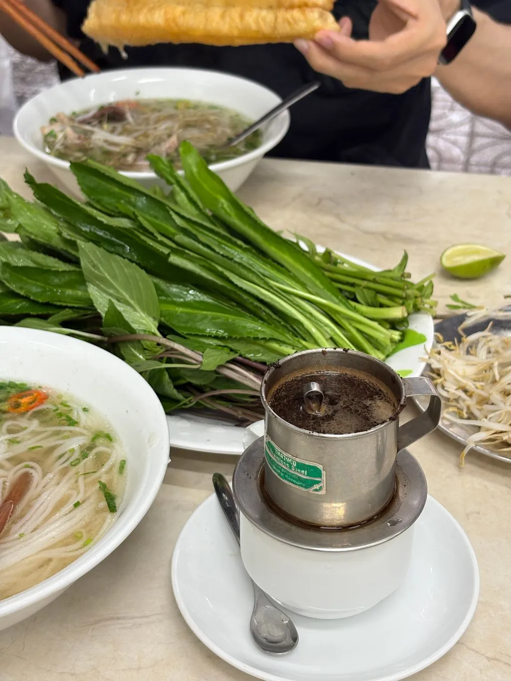 回酒店后终于可以入住了,先睡了一觉,醒来后先去了一家非常多人推荐的金店换越南盾,这家店的汇率不错,有3850。换完后去金店边上一家pho越南米粉店,作为越南第一顿pho,这家店可以说给了一个惊喜,牛肉粉的汤底很鲜美,里面的牛肉也很嫩,加上罗勒叶的特殊风味和柠檬的酸味,味道很丰富,可惜对比后面的几家店少了辣椒。